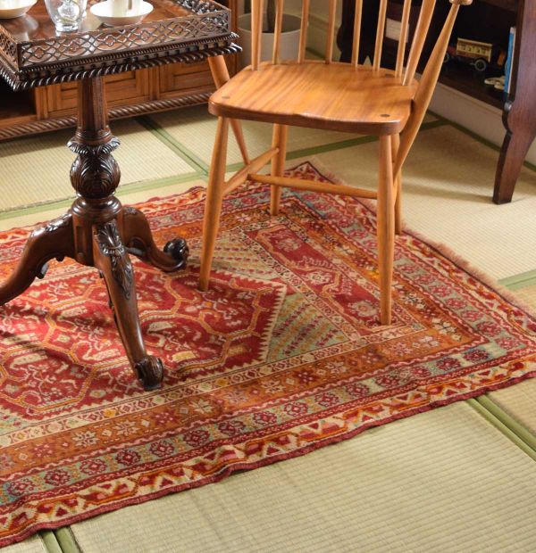 畳の上にペルシャ絨毯を広げた秋色の和室