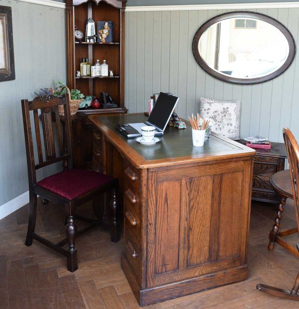 ゲートレッグテーブルに並んで2人で仕事をこなす英国スタイルの書斎