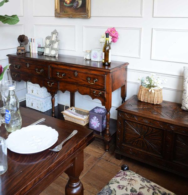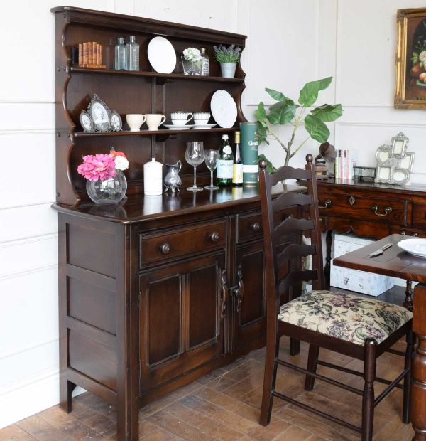大きなワードローブを食器棚に使う、英国スタイルのダイニング