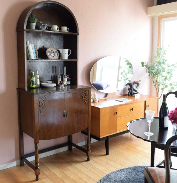 一人の時間をマホガニーのキャビネットと楽しむダイニング