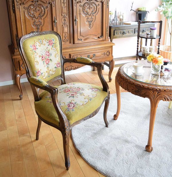 プチポワンの椅子を2脚・・・と思ったんだけれど、ちょっと可愛らしさもプラスしたくなって、選んだのはロイドルーム。仏×英国の椅子同士で、お話している感じが可愛い~