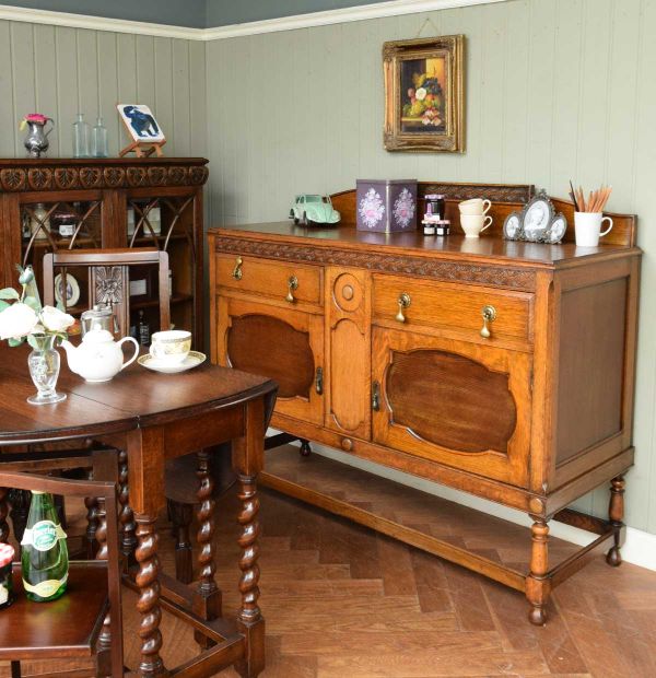 こんなお部屋で朝ご飯を食べたいな~と思ってコーディネートした、オーク材のアンティーク家具を集めたダイニング。 私の憧れは、ケーキスタンド!ここに朝食で食べるトーストやパンケーキなどをいろいろ並べて、ダウントンアビーのように誰か持ってきてくれないかな??(笑) 窓を大きく開けて、風をたっぷりお部屋の中に入れながら、オーク材の落ち着いた家具と過ごす朝ご飯の時間。なんだか心が満たされます。さぁ、今日もガンバロウ~!