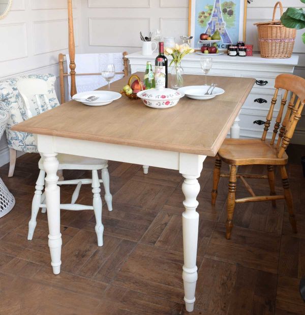 届いてから、毎日、毎日、スゴイ数のコントワールドファミーユがお嫁に行っているので、調子に乗ってダイニングもコントワールドファミーユでコーディネートしてみました(笑) ツートーンカラーのエクステンションテーブルは、いかにもフレンチシックって感じがする~!絶対に似合うウィンザーチェアをこれまたツートーンカラーで仲良く組合わせてみました。 おしゃれなデザインのサイドテーブルとトワルドジュイの椅子を置いて爽やかに決めた5月のダイニング。フランス風の風が吹いているかな??