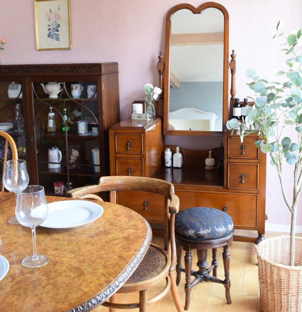 一人の時間をマホガニーのキャビネットと楽しむダイニング