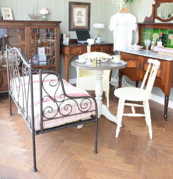 今日は夏日。暑いな・・・と思いながら、ちょこっと涼しげに過ごせるよう、アイアンのソファと白い椅子を置いた書斎をコーディネートしてみました。 やっぱり素材感って大事だな・・・って、アイアンの家具を置くたびに思うこの頃。白い椅子もプラスしたことで、見た目が涼しげな書斎が完成。 大好きな猫脚のコンソールをデスクにして、隣にはシノワズリスタイルの本棚。クーラー嫌いな私でも、さすがにクーラーをガンガンにかけて仕事しています。