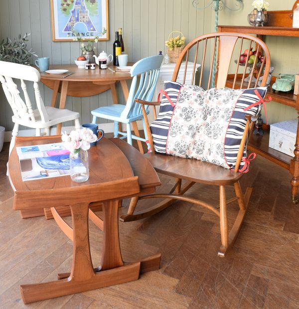 今日で次男のテスト期間も終了。化学のテストがあるというので、薬剤師の威信にかけて、本気で教える勉強部屋をコーディネートしてみました。 デスクの代わりに使ったのはアーコールのドロップリーフテーブル。片方を畳んでカウンターのように壁に付けて、椅子を2脚並べた勉強スペースでガッツリ指導。不安だったけれど、意外に覚えていて解けることが分かって私も楽しい~! 疲れたら、私だけ休憩をとるためのロッキングチェア。さぁ、ガンバレ!受験生☆