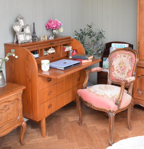 昨日から今日にかけて、次のフランス便の入荷の手続きで忙しすぎ・・・頭の中がすっかりフランス気分なので、フレンチスタイルの書斎をコーディネートしてみました。 やっぱり存在感が大きいフランスのガラスキャビネットとプチポワンチェアは、並べるだけで一気にフランスの香りが漂う~! あまりデコラティブすぎるのもなんだかな・・・と思い始めて、アーコールのローテーブルとシンプルなビューローを組み合わせた書斎。さぁ、気分がフレンチになった所で、あと一息がんばるぞ!