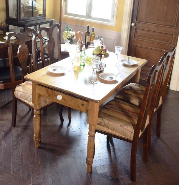 今日は久しぶりに妹家族が帰ってくるので、みんなでゴハンを食べるダイニングをコーディネートしてみました。 クイーンアンチェアを使おう!と決めて、選んだテーブルは・・・オールドパイン(笑)こっちも久しぶりに使うのでワクワクする~ 最近、すごく気に入っている細長いガラスのキャビネットを壁面に置いて、思い出話を楽しみながら食事がすすみそうです。
