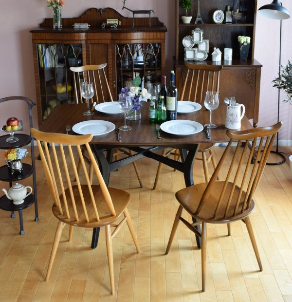 眠い眠い眠い・・・昨日、急遽、長男の野球の試合を見に合宿先の新潟まで車で出かけて日帰りしたので、とにかく眠い・・・早くご飯を食べて寝たいと思ってダイニングをコーディネートしてみました。 頭が回らないので、とりあえず好きな家具を集めてみたんだけれど、振り返ってみると、いい感じ(笑) スッキリスタイルのG-PLANのダイニングテーブルにゴールドスミスチェアを組合わせて、大好きなポインテッドアーチのガラスキャビネットを置いた食卓。あぁ・・・早く寝たい・・・(笑)