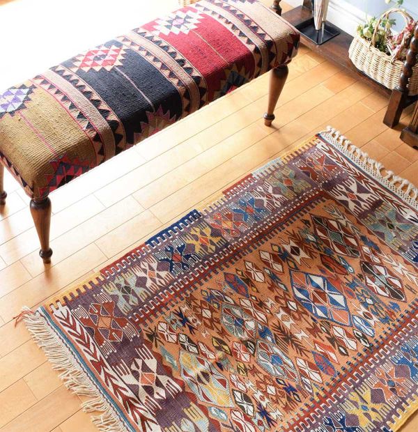 トライバルラグのお花が咲いた長靴を履く玄関