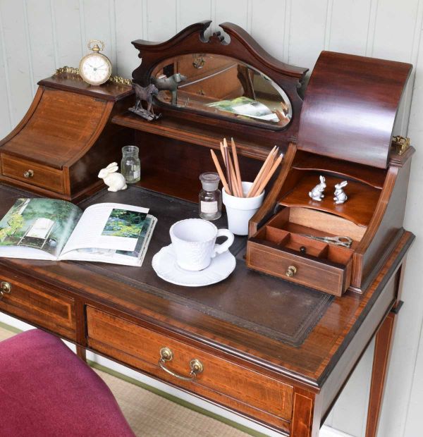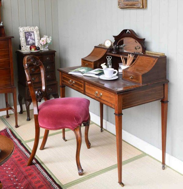 スイングを鏡でチェックするドレッサーのある和室