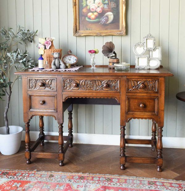 装飾が美しいデスクとコンソールは、どっちの用途でも使えて便利!壁面に置いて、上に鏡か絵、どっちをかけようか悩んで、今回は絵をセレクトしてみました。