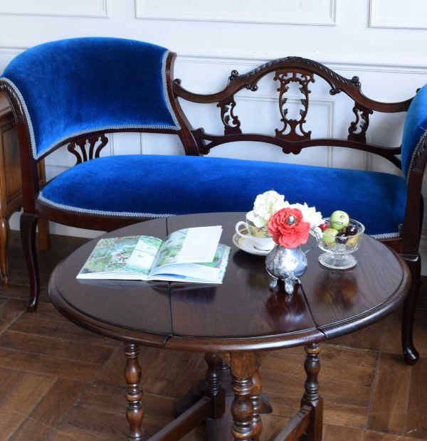 正直・・・これだけでお腹いっぱい(笑)大満足なんだけれど、せっかく書斎を作るんだったらと、お気に入りのビューローブックケースを設置。さらに猫足で攻めようかとも思ったけれど、より猫足が目立つように雰囲気の違う挽き物足のローテーブルを置いてみました。
