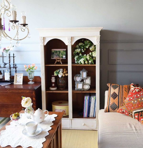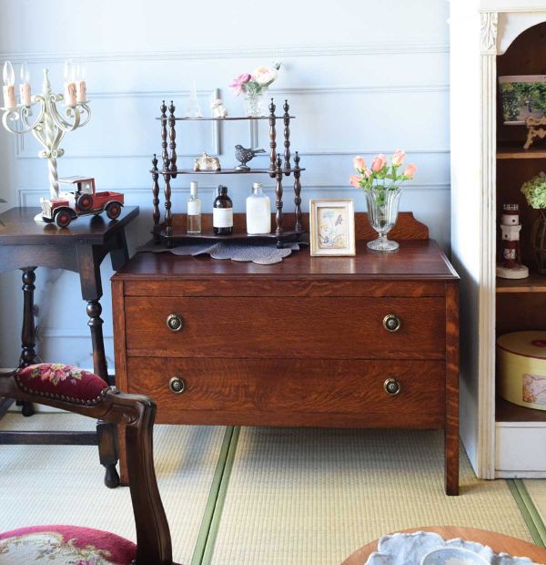 高さと色を揃えた家具で作る和室スタイルの書斎