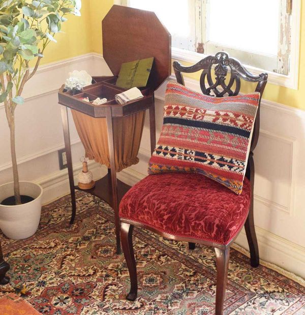 小物はめずらしいソーイングボックスの中に全部入れて、天板を閉じるとお茶を飲むのにピッタリ~!お喋りしながらあっという間にお稽古が終了。来年は一人で着れるかな??