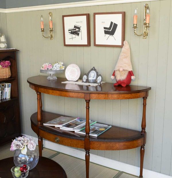 サイドバイサイドをデスクとして使って、隣にはオープンタイプの本棚を。せっかくクリスマスなので、コンソールテーブルを置いて、ディスプレイを楽しんでみました。
