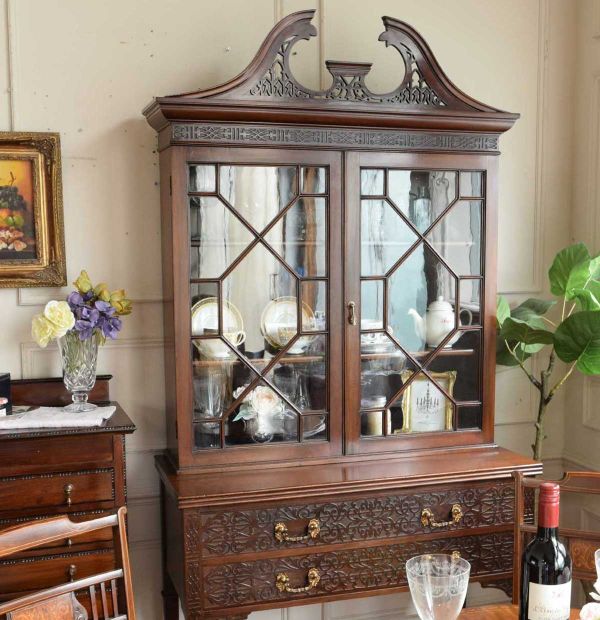 2023年最初のコーディネートは、気合が入りまくった豪華バージョンに仕上がったので、テンションが上がる~(笑) ダイニングと言うより、ちょっと優雅な気分でお茶を楽しむワンコーナーって感じ!足が細くて美しいオケージョナルテーブルとサイドチェアを組合わせて、リッチな気分に浸っています。 さらに気分をあげてくれるのが、シノワズリデザインのガラスキャビネット。食器棚として使ったミュージックキャビネットと、今年もいろんなスタイリングをご紹介していこうと思います☆