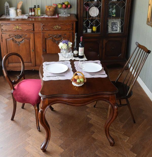 今日はお客様からのご依頼で、猫足のテーブルに合わせてスタイリングしたダイニングをご紹介。 クニュ~っと曲がった曲線ラインが美しいフランスのテーブルに同じく猫足のバルーンバックとシンプルなアーコールを組合わせてみました。 デコラティブで統一感のある雰囲気に仕上げたかったらバルーンバック、それぞれの個性を活かす雰囲気のお部屋にはゴールドスミスかな・・・ 自分だったら、どっちを選ぶかな・・・と悩みながらも、足のデザインでお部屋のインテリアが大きく変化することに改めて気付いて、面白いなと思っています。