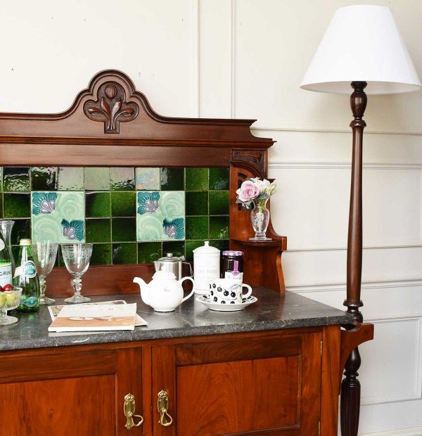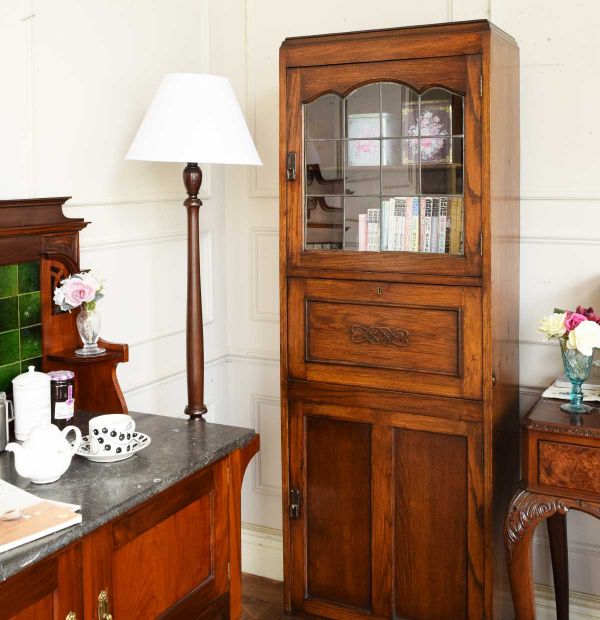 大きなワードローブを食器棚に使う、英国スタイルのダイニング