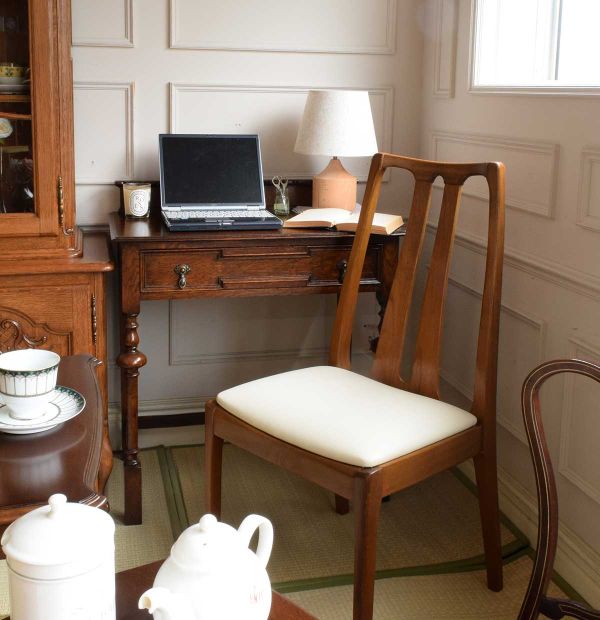 窓からの光で習字を楽しむ正座する寺子屋風和室
