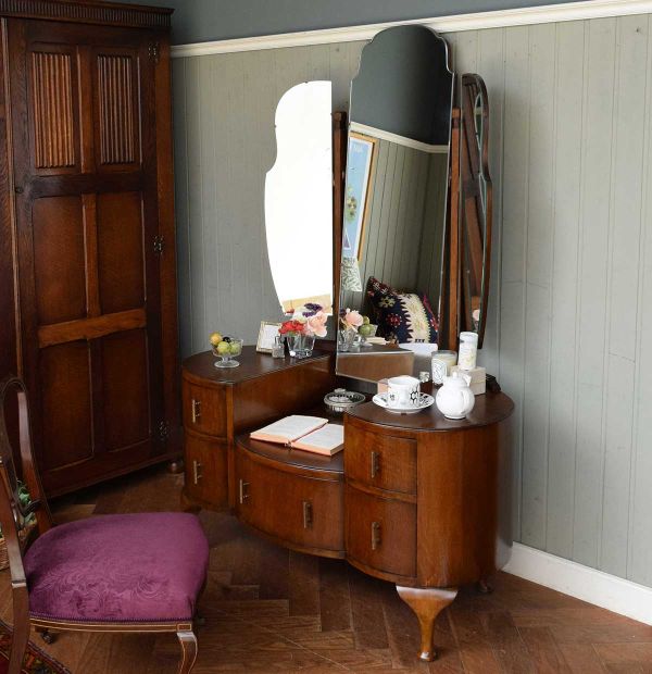 毎朝、髪型をチェックできる、シェービングドレッサーのある寝室