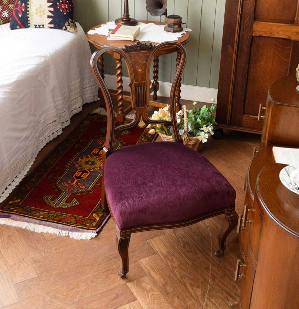 最近、朝、寒すぎてなかなか布団から出れない・・・と思いながら、快適に過ごせる寝室をコーディネートしてみました。 今日の主役は、アンティーク家具では超めずらしい全身がチェック出来ちゃう大きめの三面鏡。大きく広げた形もすごくキレイで超お気に入りのこの子に、座面が低いナーシングチェアを組合わせてみたら、驚くほど高さがピッタリ☆ ベッドサイドにはツイスト足のローテーブルをナイトテーブル代わりに置いて、ウィリアムモリスシェードのテーブルランプを。ますますベッドから出れないかも?(笑)