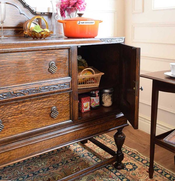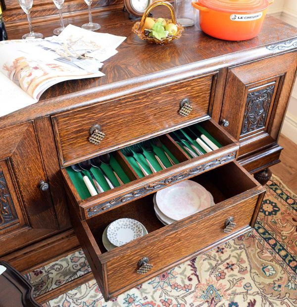 大きなワードローブを食器棚に使う、英国スタイルのダイニング