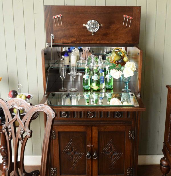 太陽が鏡にキラッと反射するカクテルキャビネットのある部屋