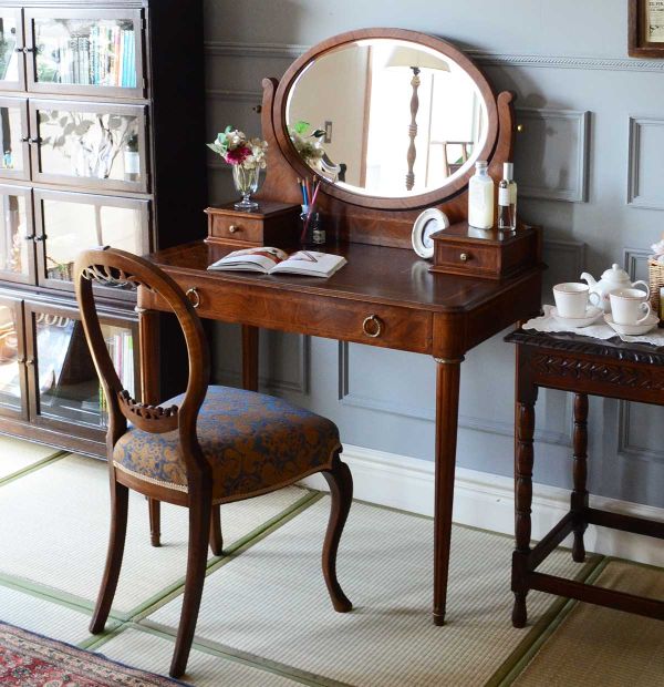 スイングを鏡でチェックするドレッサーのある和室