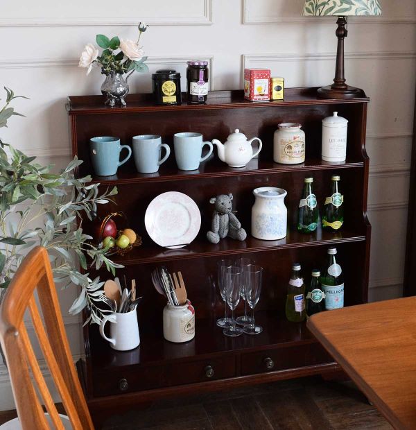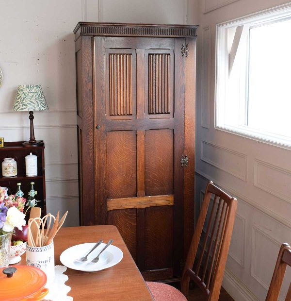大きなワードローブを食器棚に使う、英国スタイルのダイニング