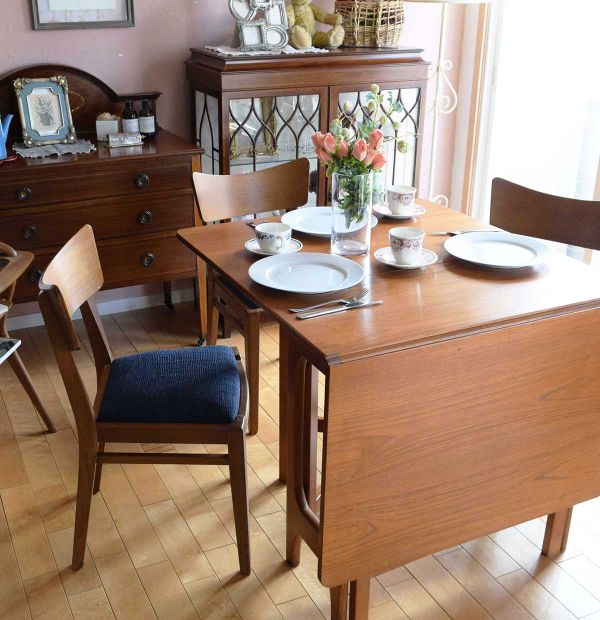 バタフライテーブルを囲んでお茶を楽しむ家具の力を感じるダイニング