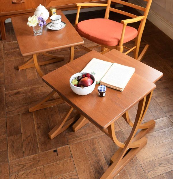 今日と明日、友達と卒業旅行に出かけた次男。修学旅行も合宿もなかったので、思いっきり楽しんで欲しいな・・・と思いながら、空いてしまった自分の時間を過ごすリビングをコーディネートしてみました。 体全体を包み込んでくれるロッキングチェアに座って、脇にはお決まりのネストテーブルを。お部屋のコーナー用と壁面用、2台のコンソールを設置して合計3台のいろんなテーブルを楽しむリビングを作ってみました。 細々としたものをたっぷり収納できるサイドボードをお部屋の顔にすれば、収納も見た目もおしゃれ。今頃、ジェットコースター、楽しんでるかな??