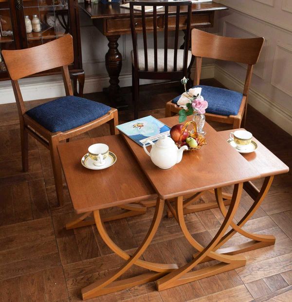 休憩する場所に、ネイサンのネストテーブルを少しずつズラして並べてみたら!めっちゃくちゃキレイ☆足のデザインがあまりに美しくて、思わず眺めてうっとり~