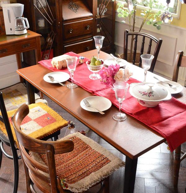 先日、東京で開催されたテーブルコーディネート展に参加した時の私の記事を読んで、スタッフの宮下さんが素敵にスタイリングしてくれたダイニング。なんだか嬉しいな・・・と思いながら、周りに家具を設置してみました。