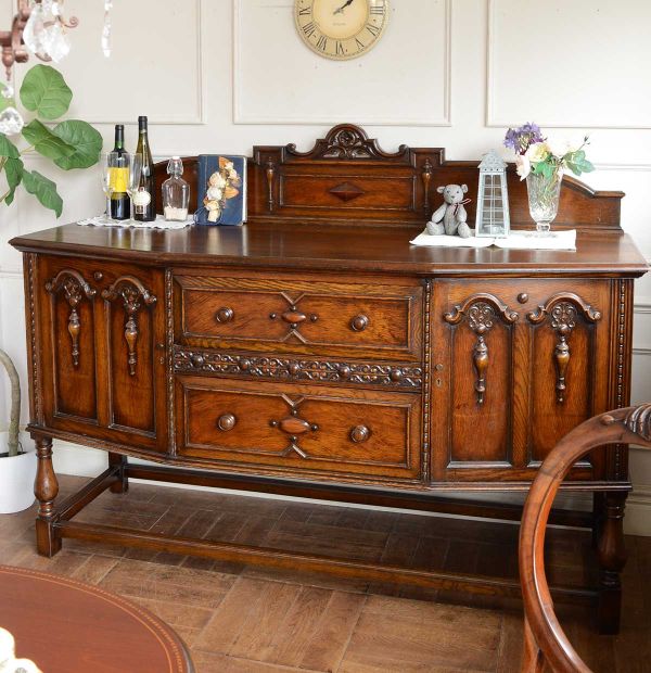 と言いながらも、いかにもアンティークって感じがする大きな大きなサイドボードと、使いやすいサイズのブックケースを組合わせて設置。自慢の1灯シャンデリアを吊るして完璧に仕上がりました。
