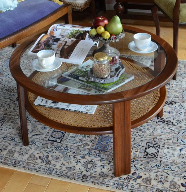 今日のデスクは、スッゴク可愛いサイドバイサイド。湾曲したガラス扉がとっても素敵だなって思いながら、お気に入りのセティを置いて、前には涼しげなガラストップのローテーブルを。