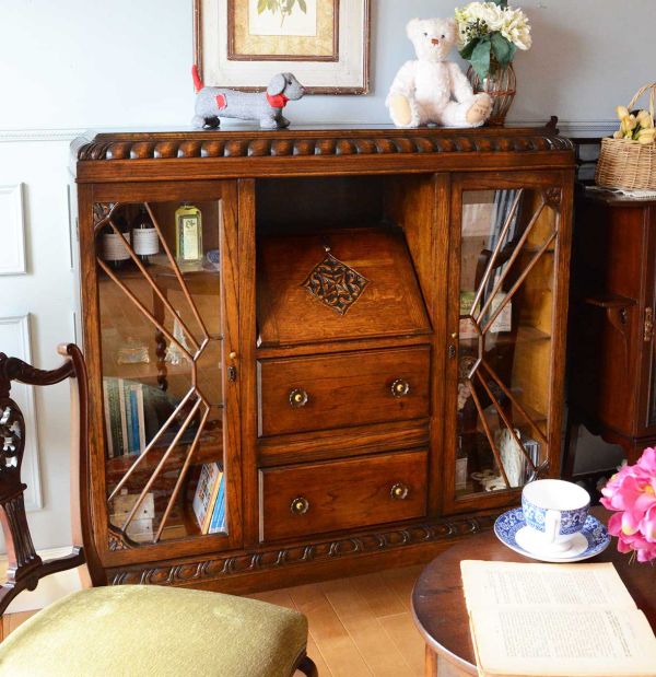 オーク材のアンティーク家具で統一したジャコビアン様式のリビング