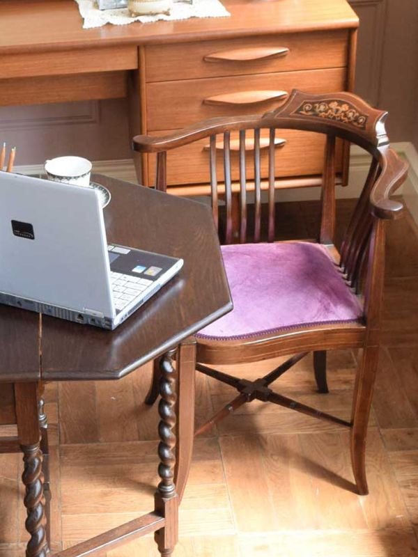 今日は東京の妹の事務所で仕事。デザイン事務所らしく、ビンテージの家具を使ったおしゃれな事務所に影響されて、ビンテージのドレッサーとライティングビューローを並べた書斎を作ってみました。