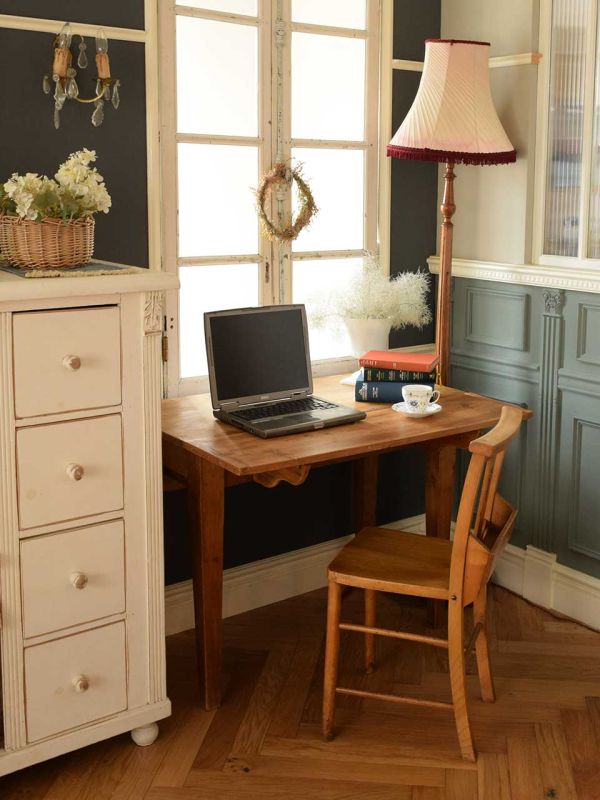 茶色とグリーンで引き締めたナチュラルな仕事部屋