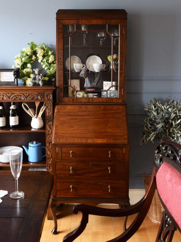 大きなワードローブを食器棚に使う、英国スタイルのダイニング