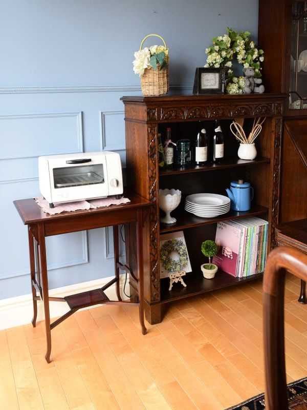 一人の時間をマホガニーのキャビネットと楽しむダイニング