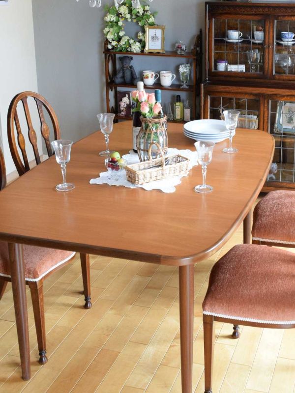 午前中、末っ子の野球の練習試合に付き合ってクタクタ・・・夜ご飯どうしようかな?と思っていたら、近所でお祭りがあるので、屋台で買ってきたもので囲む夕食のダイニングをコーディネートしてみました。 焼き鳥、手羽先、焼きそば・・・ビールのつまみって感じの食事も、ステキなダイニングだったら、スペシャルディナーに見える(笑) シンプルなエクステンションテーブルにマホガニーの美しい椅子を組み合わせて、お祭り気分の食事を楽しもうと思います。