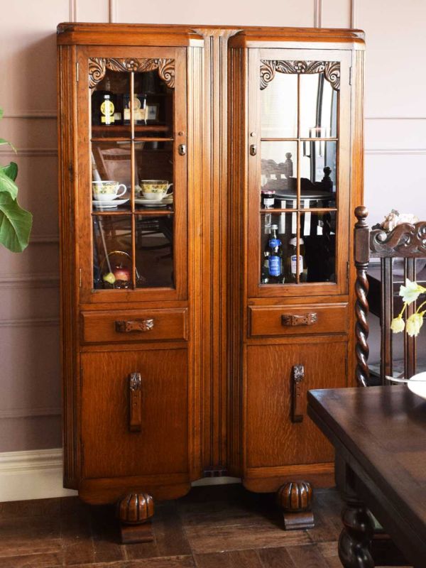 大きなワードローブを食器棚に使う、英国スタイルのダイニング