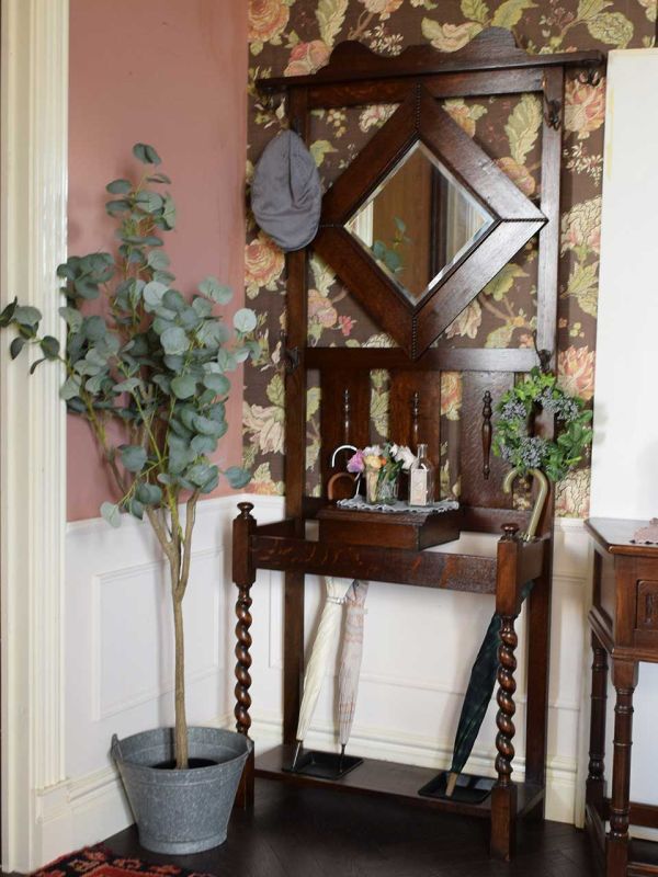 英国紳士のおしゃれアイテムを置く、ステッキスタンドを傘立てにした玄関