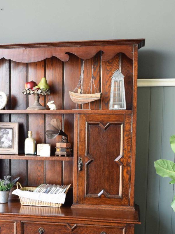 こんな書斎があったらカッコいいな・・・と憧れのウェルシュドレッサーを本棚として正面にドーンと置いて、隣にはデスクとして使うコンソールを。