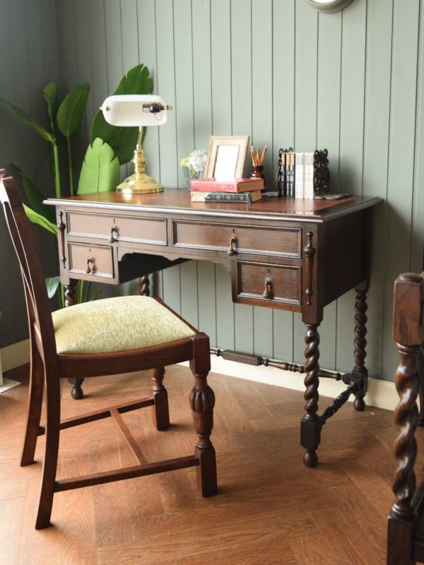 ゲートレッグテーブルに並んで2人で仕事をこなす英国スタイルの書斎