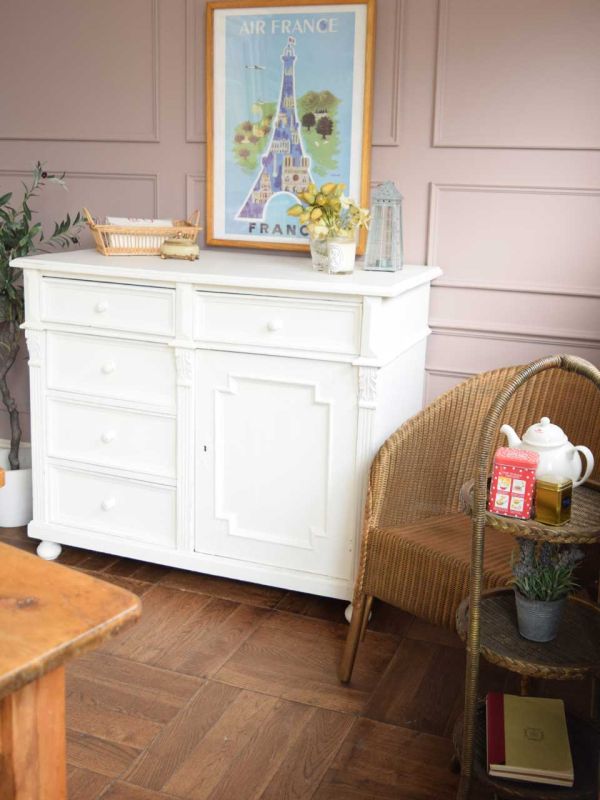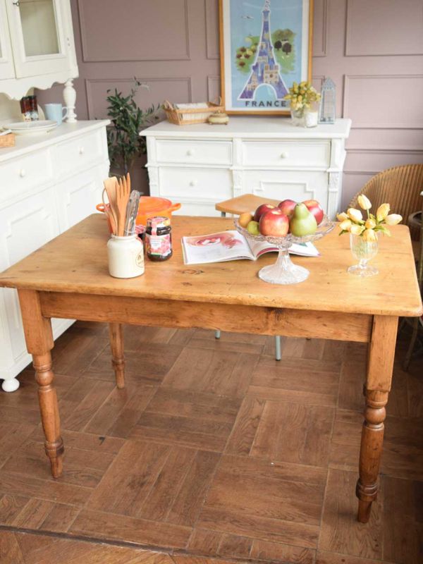 オールドパイン材のテーブルを作業台に使って、フレンチナチュラルなキッチンをコーディネートしてみました。 ダイニングテーブルって、作業台にはピッタリ!ここにいろんなものを広げて作業すれば、ご飯を作っている時間がもっと楽しくなるんじゃないかな?? 作業台の周りを、白いアンティークのペイント家具で固めて完成!今日の夜ゴハンは何にしようかな??