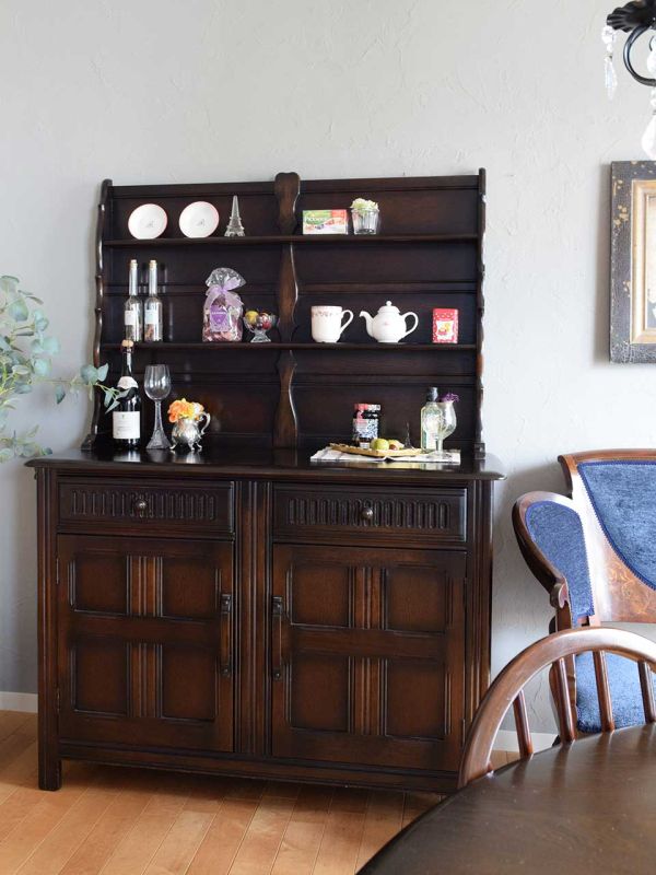 大きなワードローブを食器棚に使う、英国スタイルのダイニング