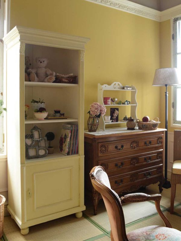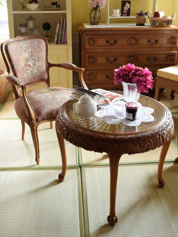 高さと色を揃えた家具で作る和室スタイルの書斎