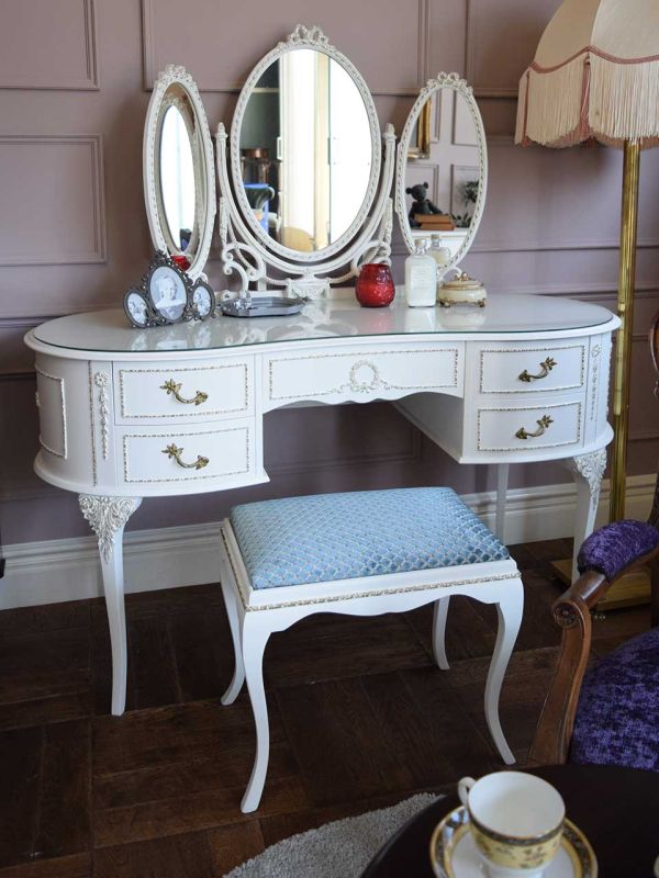 白いカシャーンが爽やかな、フレンチスタイルの寝室